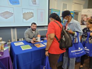 Delilah tabling at the Minority Health Initiative Fair for the Empath Partners in Care (EPIC) Day of Connection in 2025